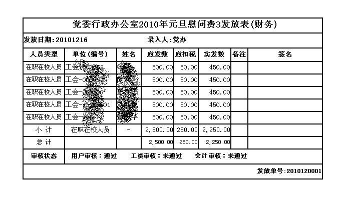六、最后,各部门的个人收入发放纸质稿报财务处审核并完善有关报账手续。